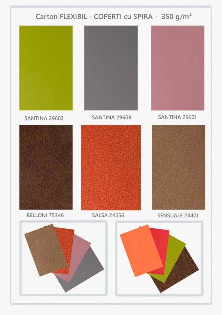 DESCRIERE Imitatie piele PVC, acoperit suplimentar cu un strat fin de PU (soft, catifelat), laminat pe un substrat de carton. Este potrivit pentru lucrări de legătorie atât semiautomate, cât și manuale.